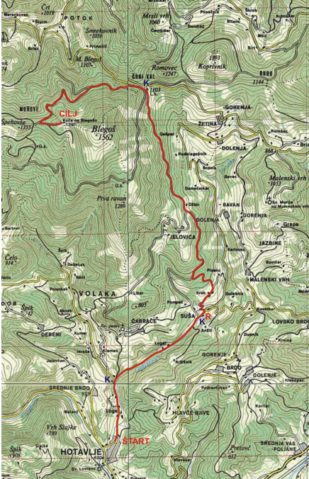Športno društvo Marmor Hotavlje organizira od leta 1999 vzpon z gorskimi kolesi na Blegoš. Tekmovanje poteka na 12,8 km dolgi progi. Štart je na Hotavljah pred zadružnim domom. Tekmovalci najprej vozijo po asfaltirani cesti do Suše, kjer se začne pravi vzpon. Preko Črnega Kala se vzpnejo do koče na Blegošu kar 988 m.n.v.